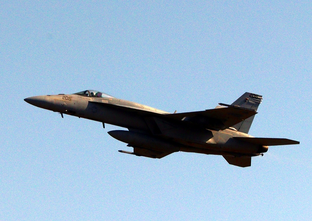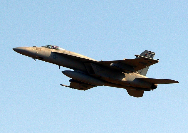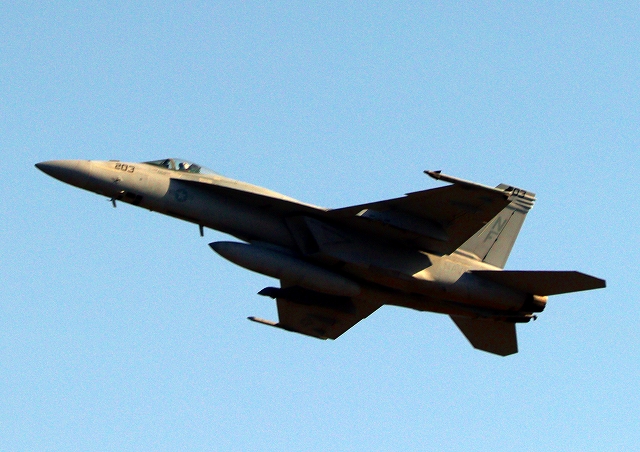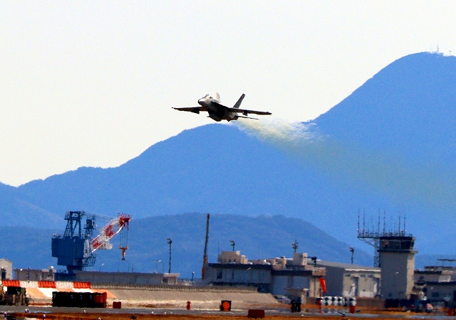 米海軍艦載機 F/A-18E スーパーホーネット 戦闘攻撃機(岩国基地)、NF、203番機が離陸 |