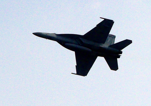米海軍艦載機 F/A-18E スーパーホーネット 戦闘攻撃機(岩国基地)、NF、405番機が離陸 |