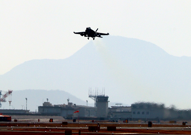 米海軍艦載機 EA-18G グラウラー 電子戦戦闘攻撃機(三沢基地)、NL、525番機が離陸 |