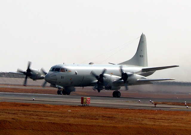 海上自衛隊 OP-3C 画像情報収集機(岩国基地)、9131番機が着陸 |