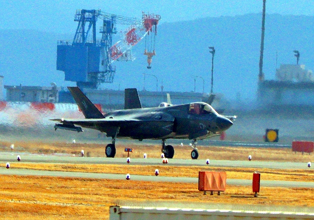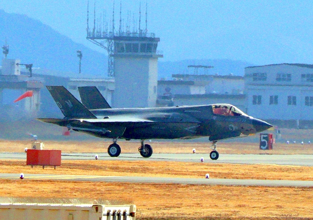 米海兵隊 F-35B ライトニングⅡ ステルス戦闘機(岩国基地)、DT、28番機が着陸