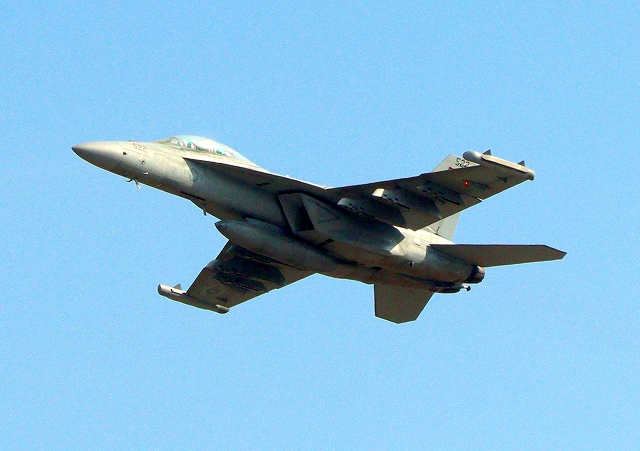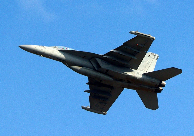 米海軍艦載機 EA-18G グラウラー 電子戦戦闘攻撃機(三沢基地)、NL、521番機が離陸 |
