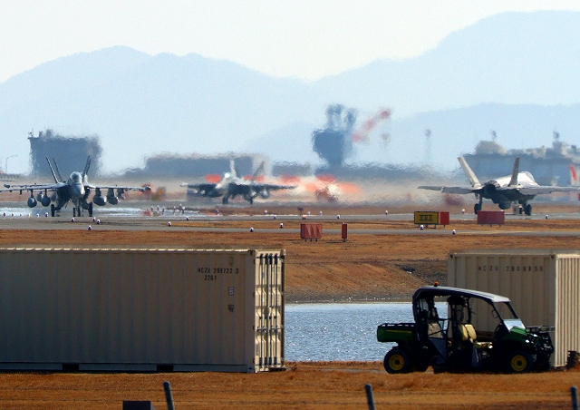 全日空旅客機定期便、着陸するもグラウラー 電子戦戦闘攻撃機 NLに邪魔されて、かなり遅れてターミナルに向かったようです。見ていて、何がどうなっているのかよく判りませんでした。 |