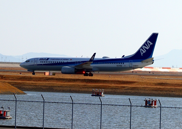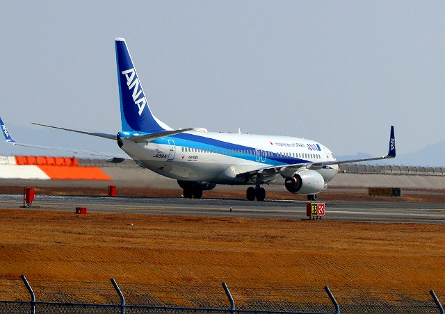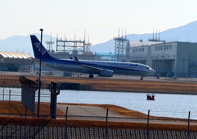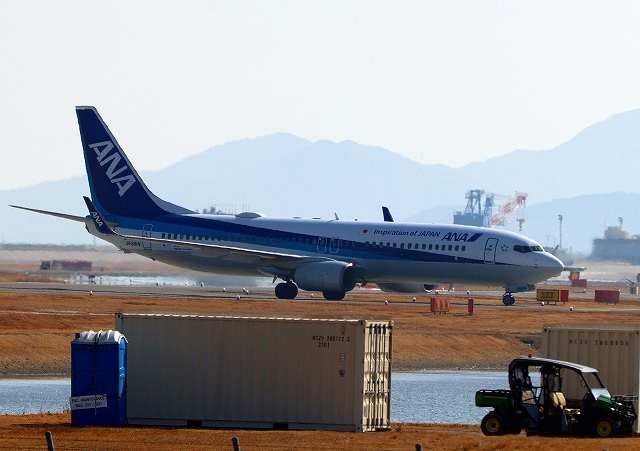 全日空旅客機定期便はようやく駐機場に向かいます 岩国錦帯橋空港到着便は14時10分。ちょうどいい時間になっちゃったです。降りる時間に余裕があったので、グラウラー NL、3機が、戻って降りるのを優先していたのかも。軍民共用空港ならではのこと。ややこしいですね。 |