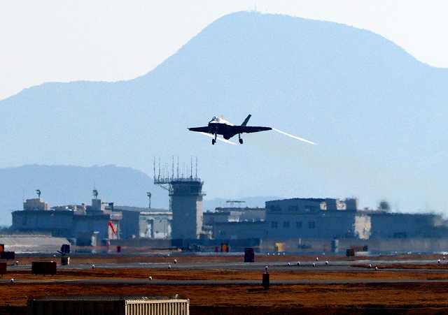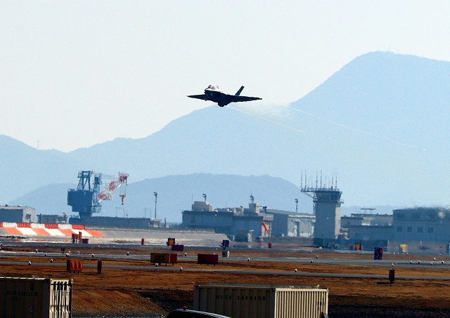 米海軍艦載機 F-35C ライトニングⅡ ステルス戦闘機(岩国基地)、NF、307番機が離陸 |