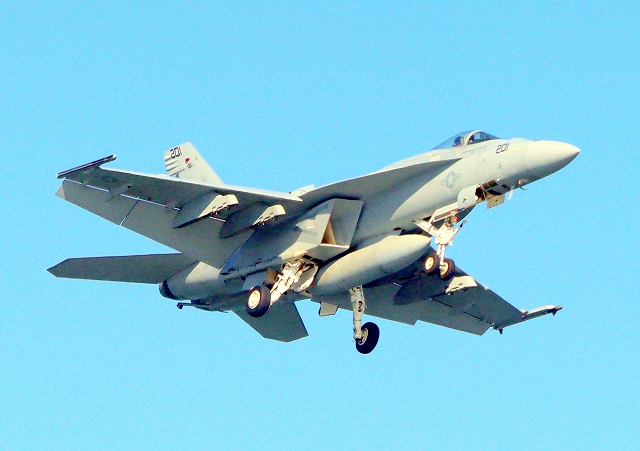 米海軍艦載機 F/A-18E スーパーホーネット 戦闘攻撃機(岩国基地)、NF、201番機 |