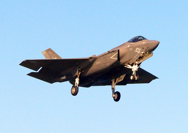 米海軍艦載機 F-35C ライトニングⅡ ステルス戦闘機(岩国基地)、NF、307番機が着陸 13時58分に離陸した機。1時間32分の飛行でした。 |