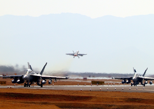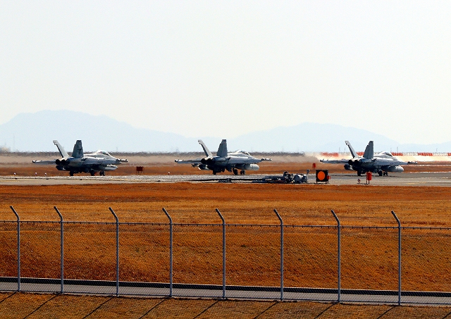 米海軍艦載機 EA-18G グラウラー 電子戦戦闘攻撃機(三沢基地)、NL、520番機が離陸 この3機は、2時間経っても戻ってきませんでした。多分、三沢基地にもどってのでしょう。12月8日頃、飛来でしたので、2か月半、岩国基地にいたことになります。 |