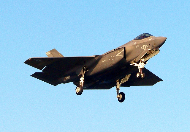 米海軍艦載機 F-35C ライトニングⅡ ステルス戦闘機(岩国基地)、NF、307番機が着陸 14時23分に離陸した機。1時間13分の飛行でした。(アップしていませんけど、写真は撮っていますので、飛行時間がわかります。) |