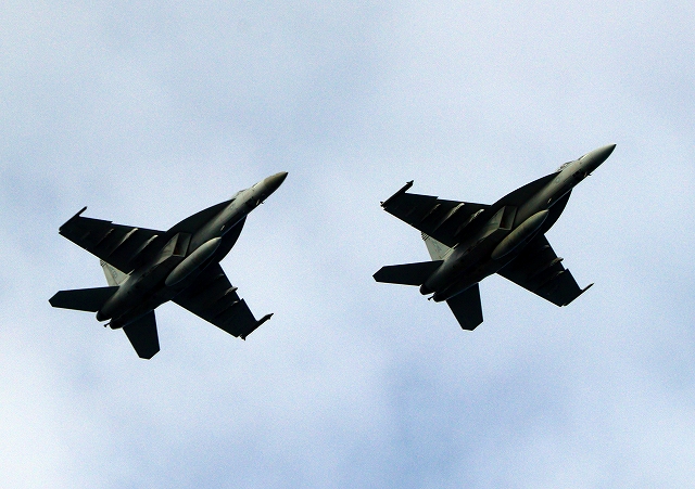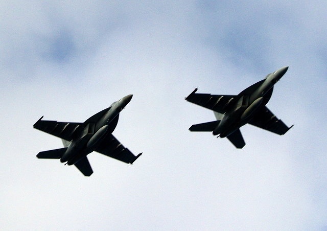 新配備!米海軍艦載機 F/A-18E スーパーホーネット 戦闘攻撃機(岩国基地)、NF、NA 401番機、AB 401番機、2機編隊で帰還