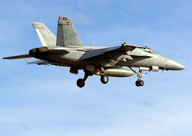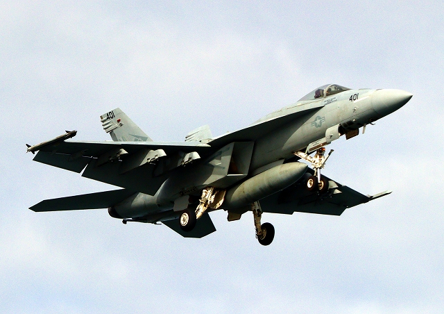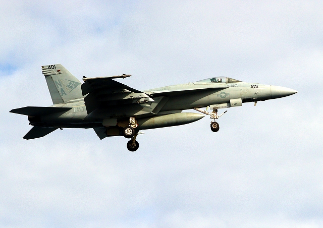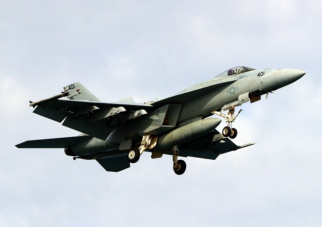 米海軍艦載機 F/A-18E スーパーホーネット 戦闘攻撃機(岩国基地)、NF、NA 401番機 |