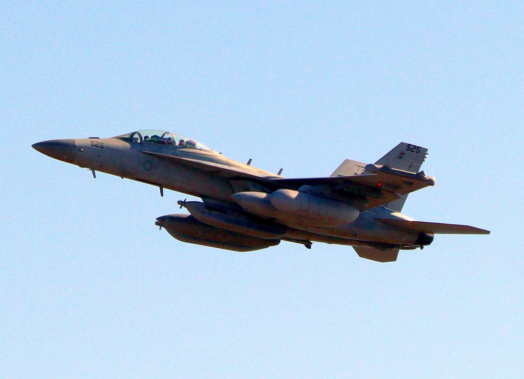 米海軍艦載機 EA-18G グラウラー 電子戦戦闘攻撃機(三沢基地)、NL、525番機が離陸