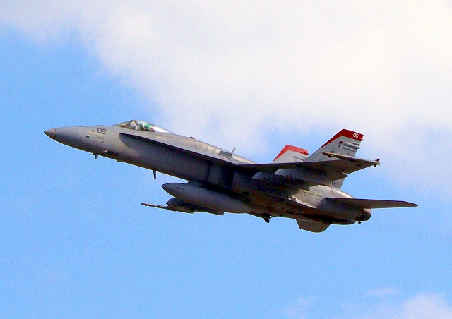 米海兵隊 F/A-18C ホーネット 戦闘攻撃機(岩国基地)、WT 06番機が離陸 |